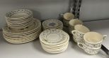 Set of Porcelain Dinnerware, Location Back Metal Shelves Set of Porcelain Dinnerware, Location Back Metal Shelves