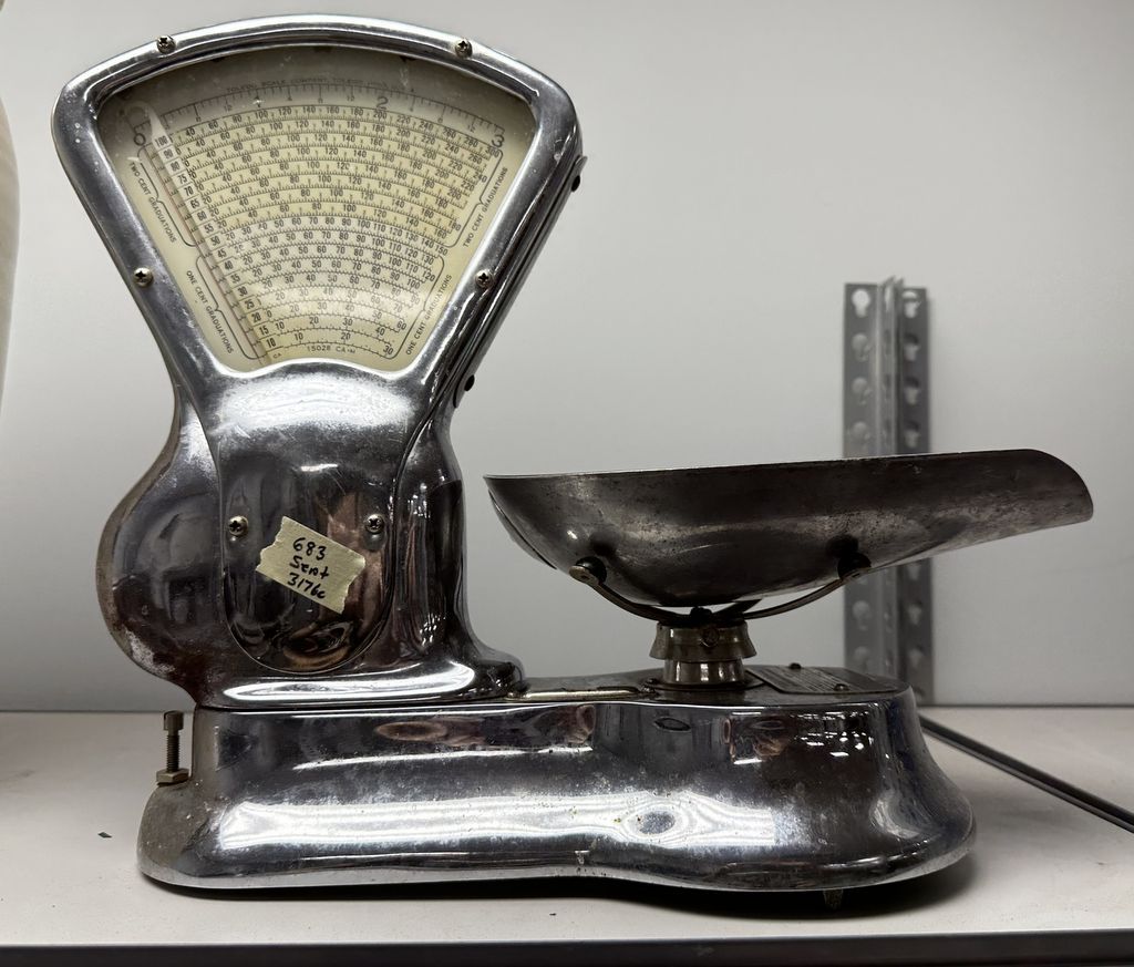 Vintage Food Weight Scale, Location Back Metal Shelves Vintage Food Weight Scale, Location Back Metal Shelves