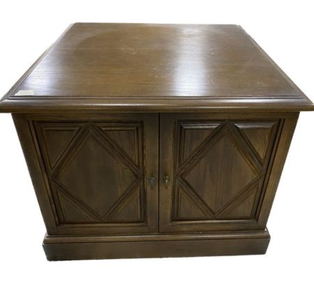 Late Mid Century Two Door Lamp Table, 21"h., 28"w. Location Row 2 Late Mid Century Two Door Lamp Table, 21"h., 28"w. Location Row 2