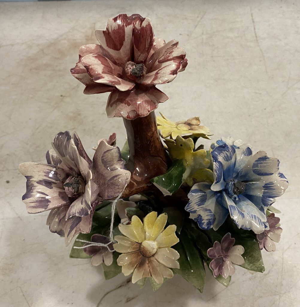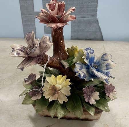 Italian Capodimonte Rectangular Flower Bouquet, flowers damaged, 9"h, Location Back Left Metal Shelves Italian Capodimonte Rectangular Flower Bouquet, flowers damaged, 9"h, Location Back Left Metal Shelves