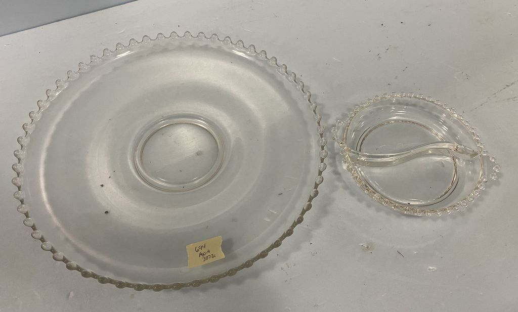 Imperial Glass 1940's Platter and Divided Dish, Location Back Metal Shelves Imperial Glass 1940's Platter and Divided Dish, Location Back Metal Shelves