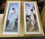 Pair of Framed Prints of Ladies, matted, 22"h., 9"w, Location Back Metal Shelves Pair of Framed Prints of Ladies, matted, 22"h., 9"w, Location Back Metal Shelves