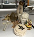 Jewelry Box, Clock, Silver Plate Vase, and Candle Holder, Location Right Metal Shelves Jewelry Box, Clock, Silver Plate Vase, and Candle Holder, Location Right Metal Shelves