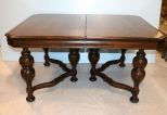 Depression era, walnut dining table. Has no leaves; 58" w., 45" d., 30" h. Depression era, walnut dining table. Has no leaves; 58" w., 45" d., 30" h.