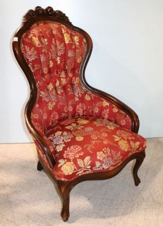 Victorian style rose carved ladys parlor chair; 27''w., 23''d., 42''h. Victorian style rose carved ladys parlor chair; 27''w., 23''d., 42''h.