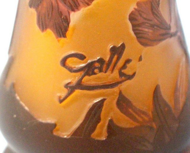 Beautiful reproduction signed Galle' vase; 7 1/2" h. Beautiful reproduction signed Galle' vase; 7 1/2" h.