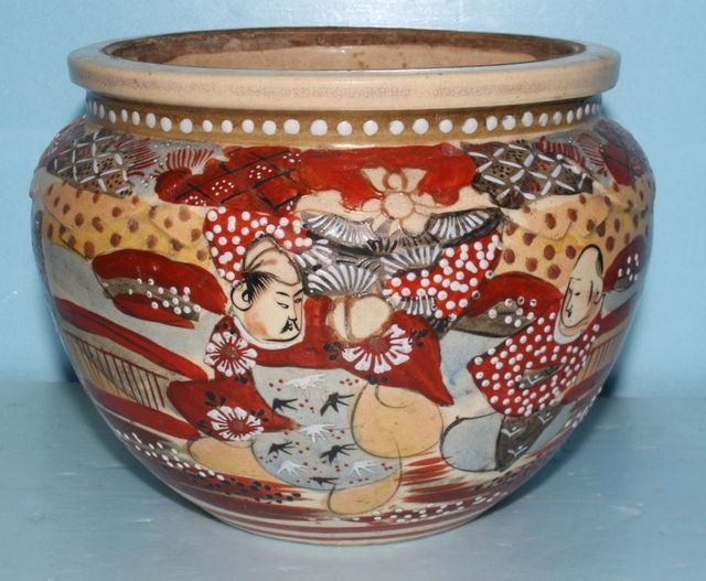 Antique Satsuma flower pot; 7" dia., 6 1/2" h. Antique Satsuma flower pot; 7" dia., 6 1/2" h.