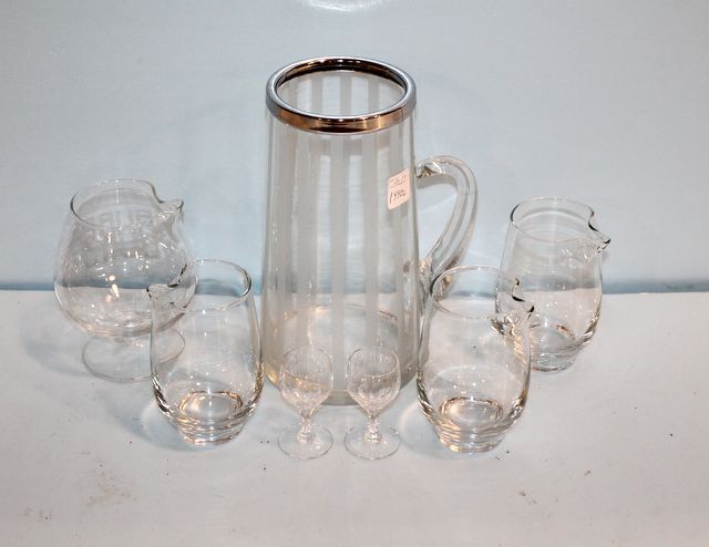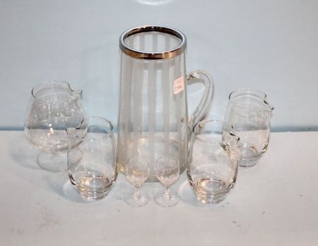 101 Etched Glass Pitcher, Six Glasses