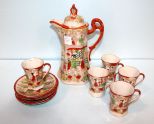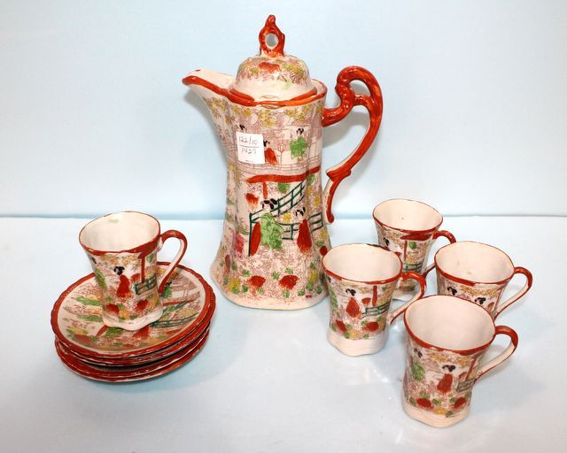 122 Oriental Porcelain Teapot, Five Cups, Four Saucers