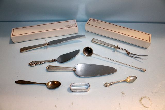 Sterling candle topper,Reed and Barton spoon, sterling handle server, Gorham sterling handle serving knife, Towle sterling handle meat knife, Towle sterling handle meat fork Sterling candle topper,Reed and Barton spoon, sterling handle server, Gorham sterling handle serving knife, Towle sterling handle meat knife, Towle sterling handle meat fork
