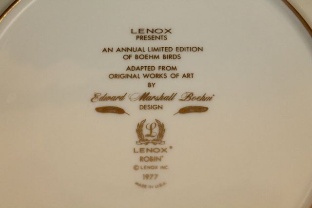 238 Lenox Limited Edition of Boehm Birds Goldfinch 1971, Wood Thrush 1970, Black-Throated Blue Warbler Robin 1977, Rufous Hummingbird 1974, Meadowlark 1973