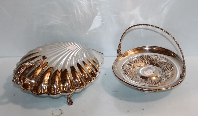 312 Quadruple Plate "James Tufts" Handled Compote & Silverplate Shell Serving Container