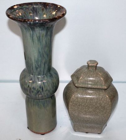413 Green Pottery Vase & Covered Jar