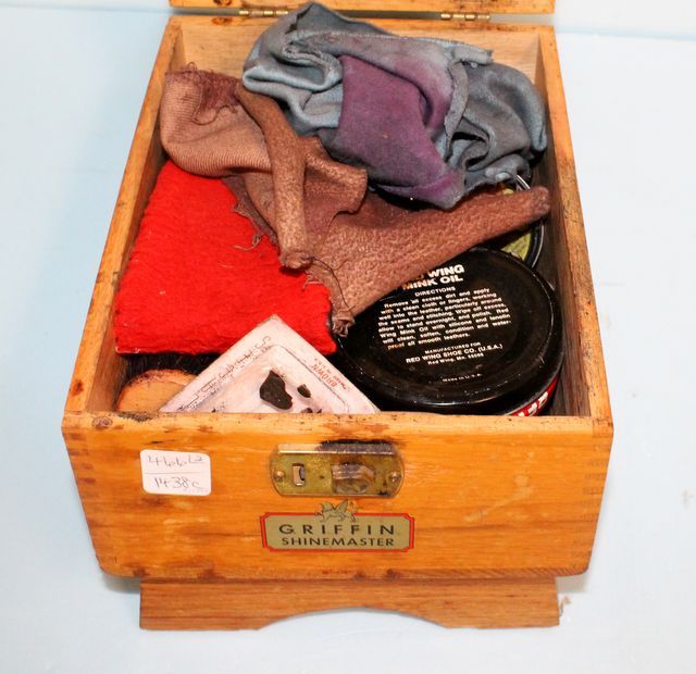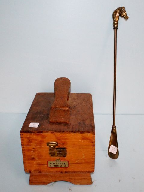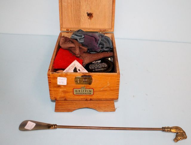 466 Oak Shoe Shine Box and Brass Shoe Horn