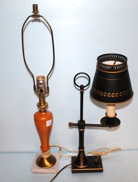 483 Black Towle Desk Lamp and Orange Wood & Metal Lamp on Marble Base