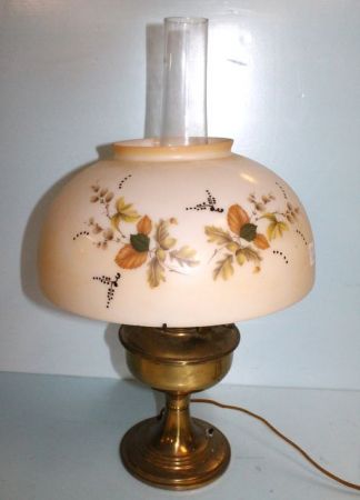 484 Converted Aladdin Brass Lamp with Hand Painted Shade