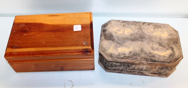 539 Cedar Jewelry Box & Carved Pressed Stone Jewelry Box