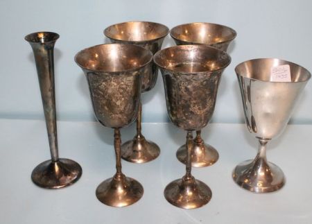 560 One Steiff Pewter Goblet, Silverplate Vase & Four Silverplate Goblets