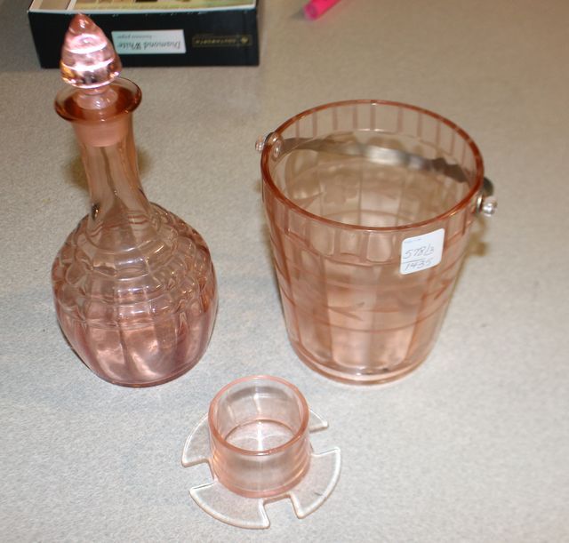 578 Pink Depression Glass, Ice Bucket & Decanter