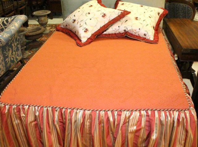 Custom made cotton damask/ stripe, double size bedspread with three co-ordiante pillows Custom made cotton damask/ stripe, double size bedspread with three co-ordiante pillows