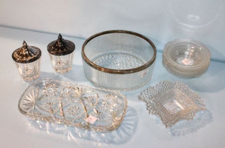 632 Salad Bowl, Two Condiment Jars, Glass Tray, Five Bowls & Two Dishes