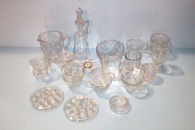 Including cups, pitchers, cruet jar; Clock- 3" Including cups, pitchers, cruet jar; Clock- 3"