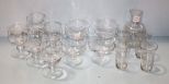 640 Small Glass Decanter, Four Glasses, Nine Other Various Size Glasses