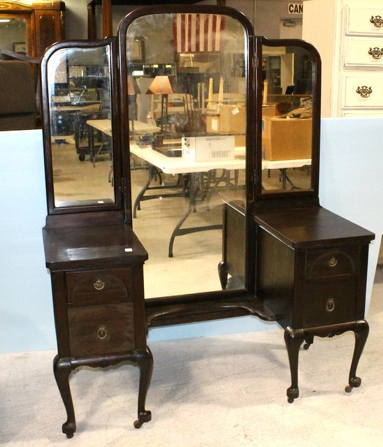 674 Mahogany 1940's Drop Center Dressing Table with Mirror