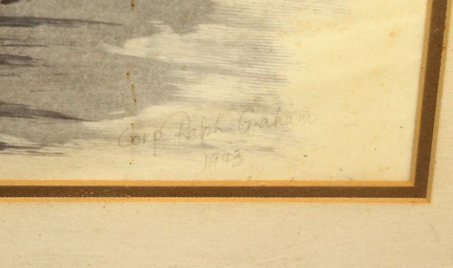Signed Corporal Ralph Graham 1943; Back says watercolor; 25 1/2" w., 21 1/2" h. Signed Corporal Ralph Graham 1943; Back says watercolor; 25 1/2" w., 21 1/2" h.