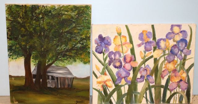 Signed J. Musto Iris- 20" w., 16" h.; Shed- 16" w., 20" h. Signed J. Musto Iris- 20" w., 16" h.; Shed- 16" w., 20" h.