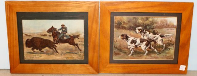 Bird Dogs- signed lower right 16 1/2" w., 13 1/2" h.; Buffalo- 16 1/2" w., 13 1/2" h. Bird Dogs- signed lower right 16 1/2" w., 13 1/2" h.; Buffalo- 16 1/2" w., 13 1/2" h.