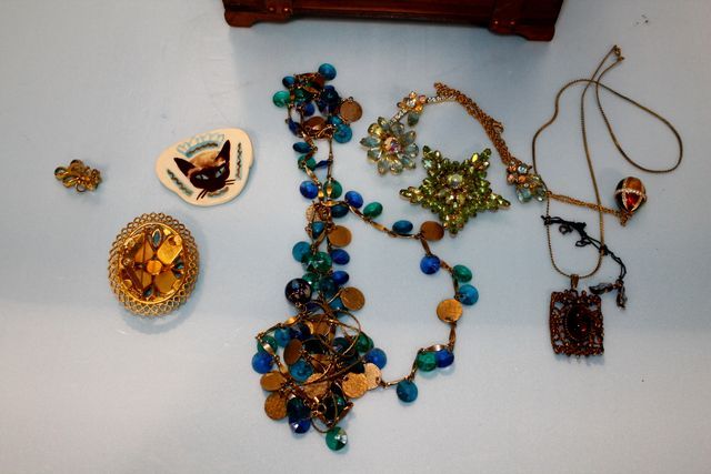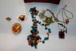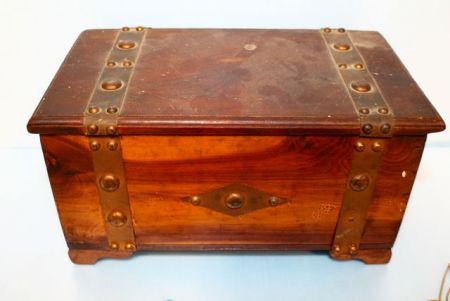 880 Vintage Cedar Jewelry Box with Costume Jewelry