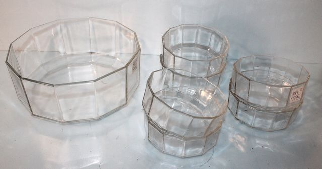 889 Clear Glass Salad Bowl & Six Smaller Bowls