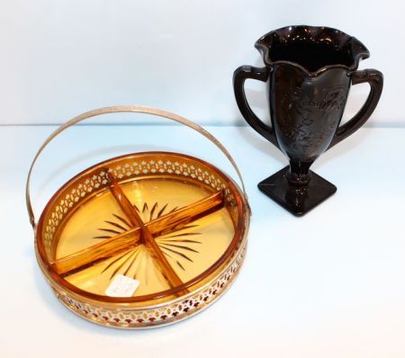 947 Amethyst Loving Cup & Amber Divided Dish