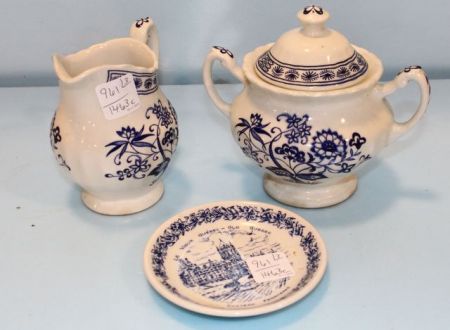 961 Meakin Blue Nordic Sugar Bowl and Creamer & LeVieux Quebec Small Plate