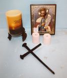 1004 Electric Religious Candle on Stand, Two Electric Candles, Reproduction Russian Icon