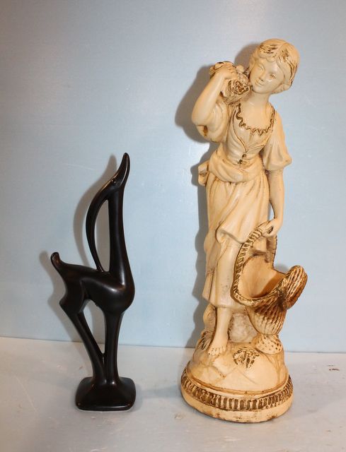 1005 Vintage Black Ceramic Figurine, Vintage Marwal Figurine of Lady with Basket