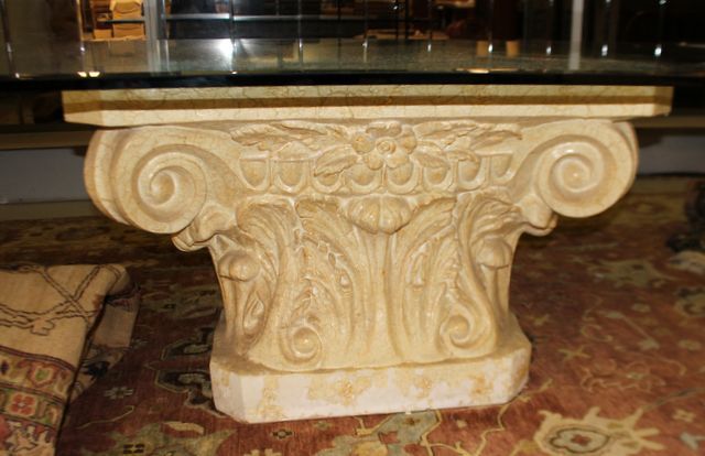 1017 Large Glass Top, Bevelled Glass Dining Table with Faux Marble Plaster Base