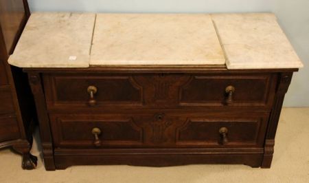 With three pieces of marble (not original); 44 1/2" w., 18 1/2" d., 24" h. With three pieces of marble (not original); 44 1/2" w., 18 1/2" d., 24" h.