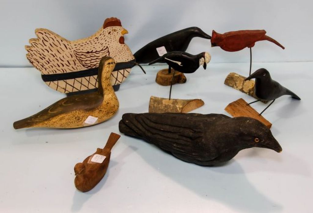 329 Group of Various Carved Birds & Wooden Rooster Door Stop