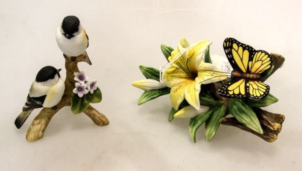 468 1986 Birds on Limb, Porcelain Butterfly and Flower