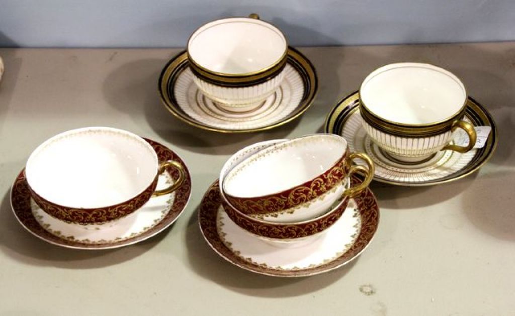490 Two Royal Doulton Blue and Gold Cups/ Saucers, Three LImoge Cups, Two Saucers