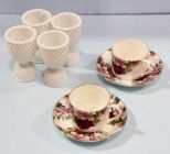 521 Four Milk Glass Cups & Two Staffordshire Cups/Saucers