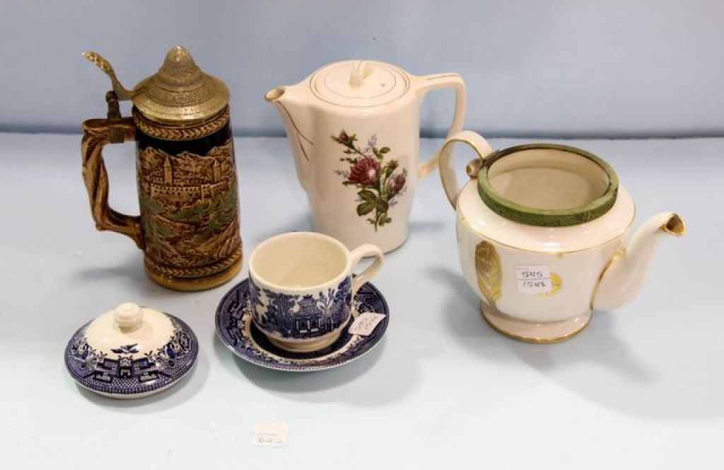 545 German Steins, Coffee Pot, Teapot & Cup/Saucer