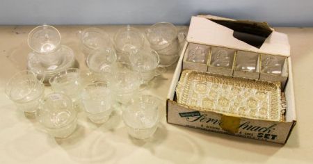 546 Anchor Glass Lunch Set, Twenty Four Glass Punch Cups & Six Saucers