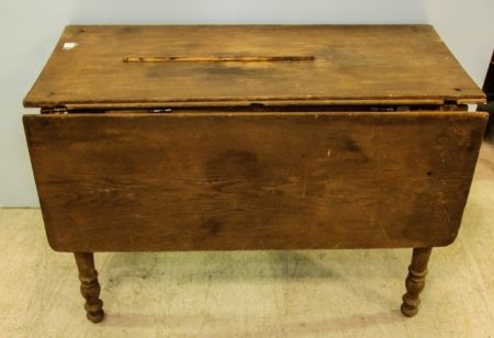 As is, needing work, with two 16" leaves.; 21" w., 42" l., 28 1/2" h. As is, needing work, with two 16" leaves.; 21" w., 42" l., 28 1/2" h.