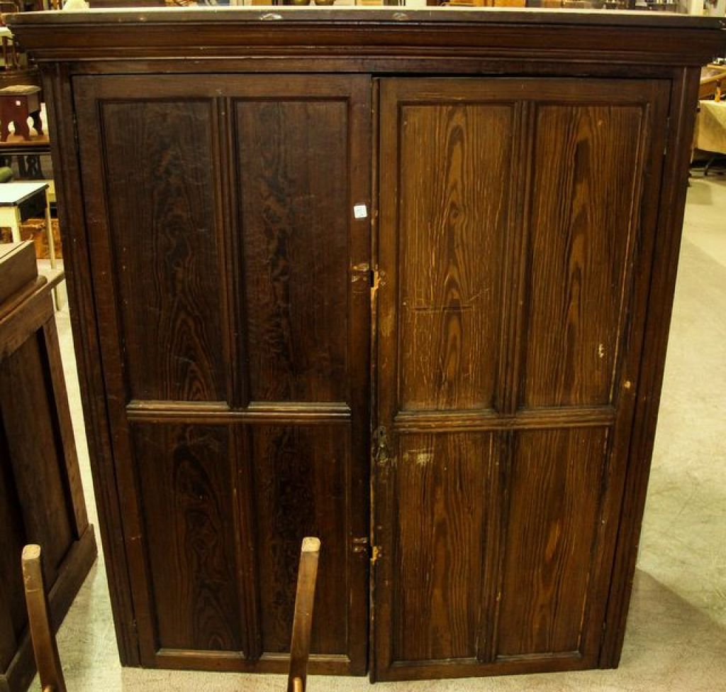 Upper section has interior shelves; 54" w., 16 1/2" d., 84" h. Upper section has interior shelves; 54" w., 16 1/2" d., 84" h.