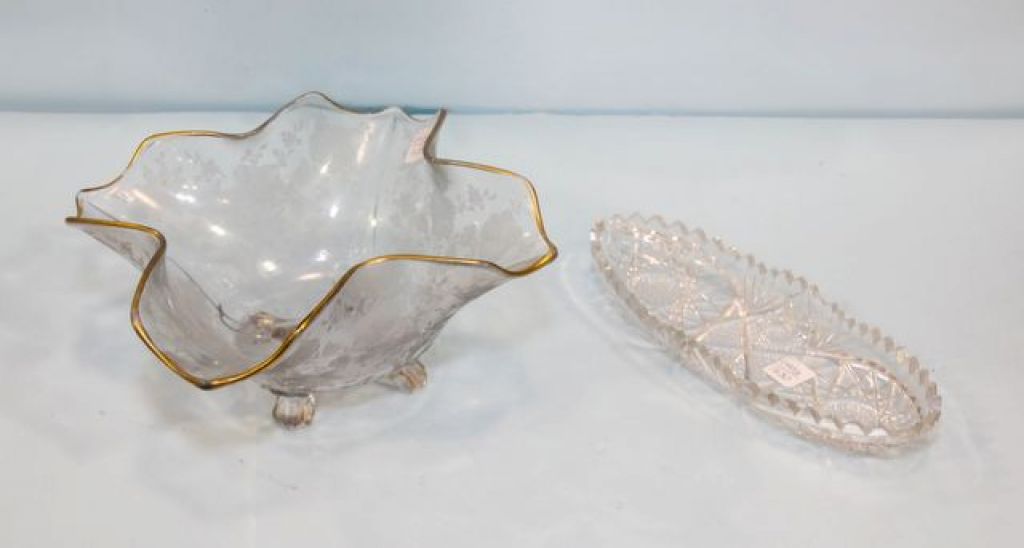 690 Large Etched Footed Fruit Bowl & Cut Glass Relish