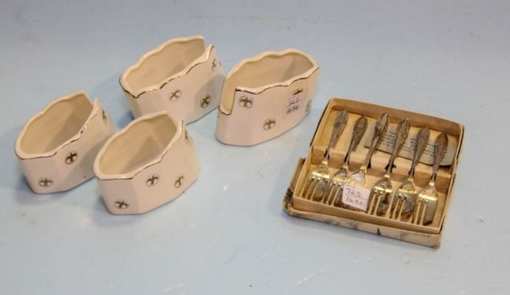 723 Set of Six Silverplate Pastry Forks & Four Ceramic Spoon Holders