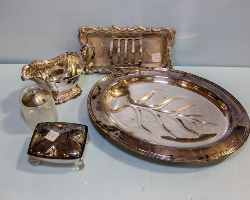Silverplate tree of life tray, creamer, covered dishes and toast tray Silverplate tree of life tray, creamer, covered dishes and toast tray